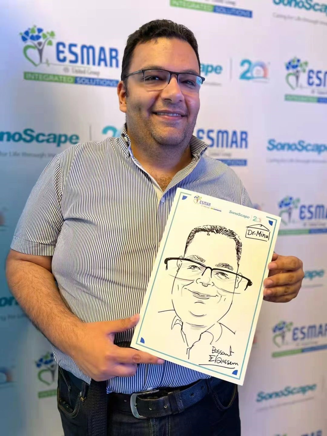 众多埃及医师学者积极参与到开立医疗国际团队准备的肖像漫画活动,为当天严谨专业的会议间隙增添了不少轻松与欢笑的交流氛围。