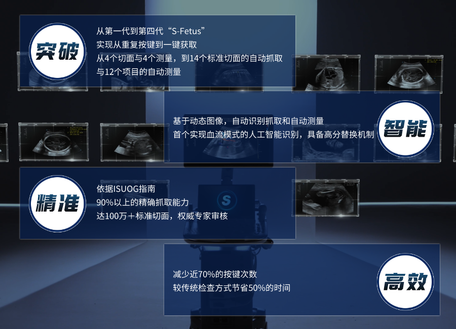 凤眼S-Fetus是全球首款基于动态图像对标准切面自动抓取的人工智能技术。为产前超声检查带来了颠覆性的技术体验。
