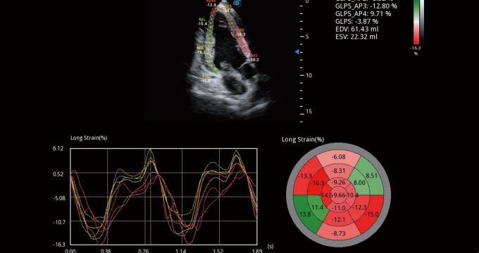 通过心肌识别技术和二维斑点追踪技术相结合,计算心肌各节段的应变、应变率、速度、位移并以曲线图显示,实现整体或者局部心肌定量分析。同时牛眼图可更直观和准确诊断心肌的运动情况。