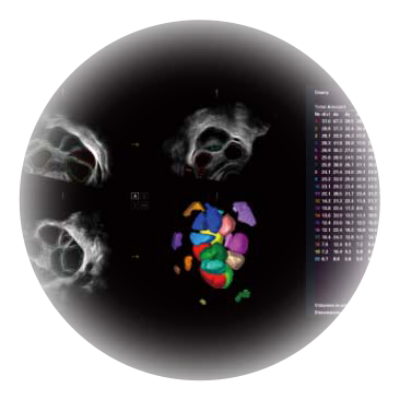 卵泡结构的自动识别和测量,可显示多组测量数据。